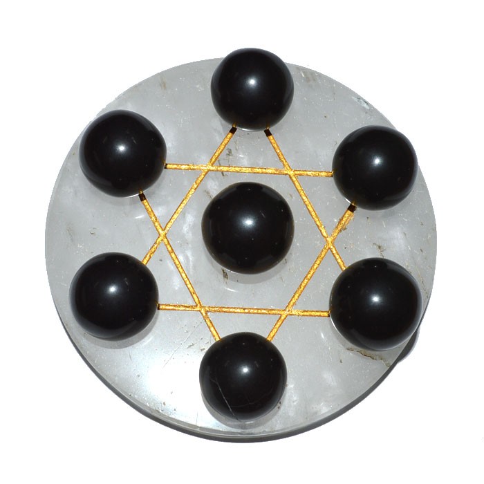 7 Black Tourmaline Pyramids on Star David Rose Quartz Base