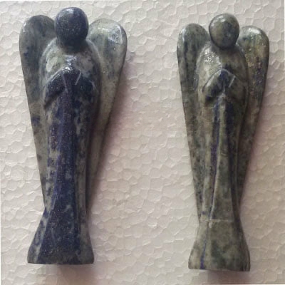 Lapiz Lazuli Big Size Angels: These stunning angels are crafted from lapiz lazuli, a mineral that is prized for its deep blue color and sparkly flecks of gold. With their big size, these angels make a beautiful and regal statement in any room. Lapiz lazuli is said to bring wisdom, truth and communication to those who surround themselves with it.