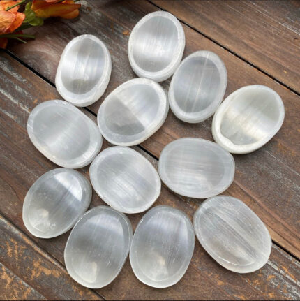 Wholesale Natural Selenite Polished Thumb Worry Pocket Stone Healing Crystal Worry Stone for Stress Relief