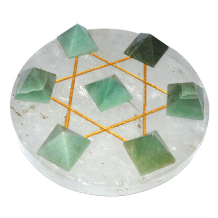 Gold Star David Crystal Base 7 Green Aventurine Pyramids