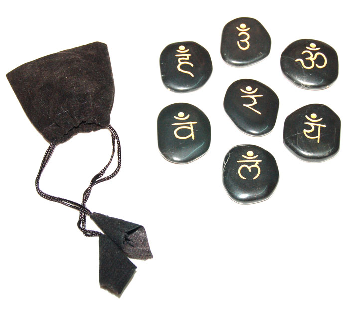 Home Chakra & Reiki Sets Chakra Sets Black Agate Sanskrit Chakra Stones 7 chakra sets natural