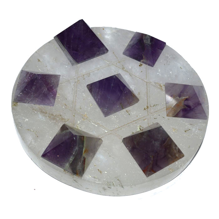 Crystal Base Seven Amethyst Pyramids on Star David