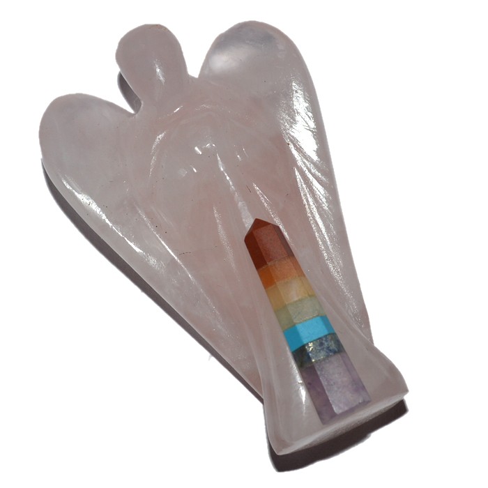 Gemstone Rose Quartz Angel With Rocket Chakra Point