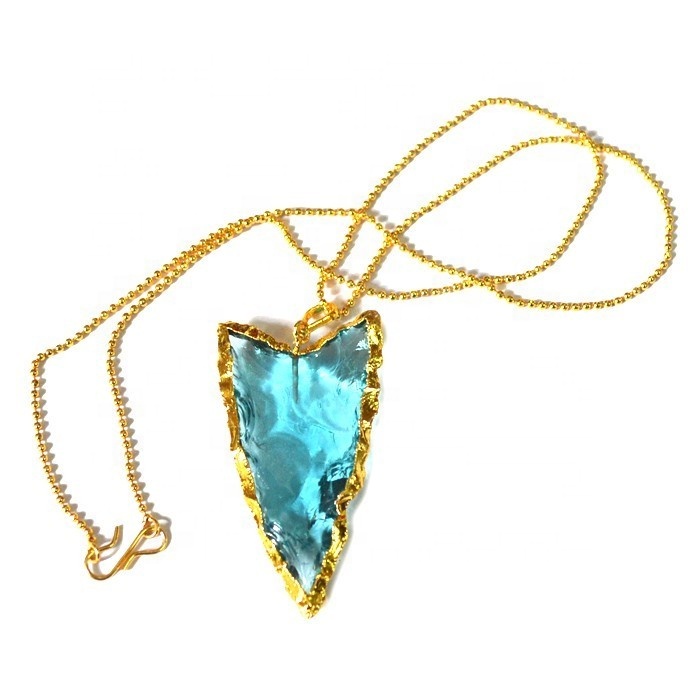 Home Arrowheads Arrowhead Necklace Huge Demand Semiprecious Crystal Stone Craft Light Aqua Electroplated Arrowheads Necklace natural