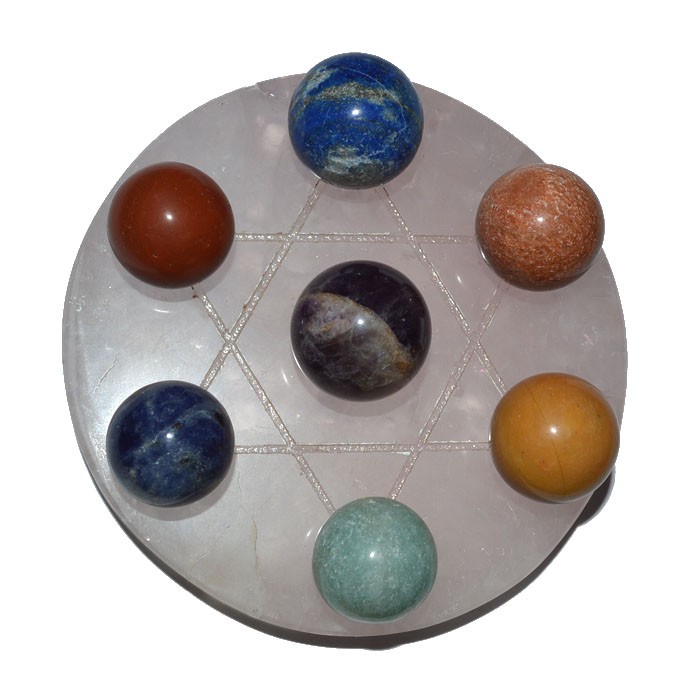 Seven Chakra Ball on Star of David Rose Quartz Base
