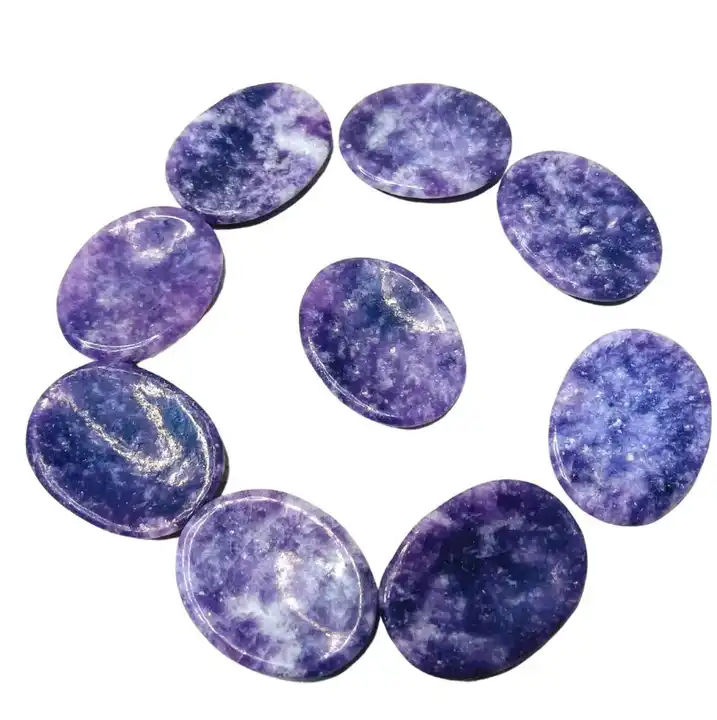 Wholesale Natural Crystal Lepidolite Thumb Worry Stone High Polished Worry Stone Healing Pocket Palm Stone For Meditation